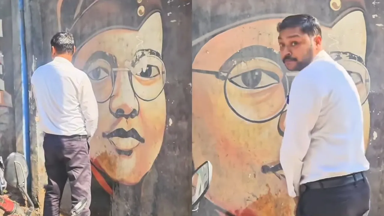 সমাজ মাধ্যমে সাড়া ফেলে দেওয়া ভিডিওটিতে দেখা যাচ্ছে, সাদা শার্ট পরিহিত এক ব্যক্তি রাস্তার পাশের এক দেওয়ালে মূত্রত্যাগ করছেন। তবে দুঃখের বিষয়, যে দেওয়ালে তিনি শরীরের বেগ ঝেড়ে ফেলছেন সেখানেই বড় করে আঁকা রয়েছে দেশনায়ক নেতাজি সুভাষচন্দ্র বসুর মুখ। একজন সুস্থ মস্তিষ্কের মানুষের চোখে তা যে খুব স্পষ্ট হবে সে কথা বলার অপেক্ষা রাখে না। তবে ভিডিওতে দেখতে পাওয়া ওই ব্যক্তি দাবি করছেন, তিনি প্রথমে বুঝতে পারেননি। এদিকে ভিডিও গ্রাহক তাকে বোঝানোর চেষ্টা করছেন, যাঁর ছবির উপর তিনি মূত্র ত্যাগ করলেন তিনি আসলে ভারতের স্বাধীনতার অন্যতম মূল কান্ডারী সুভাষ বসু।