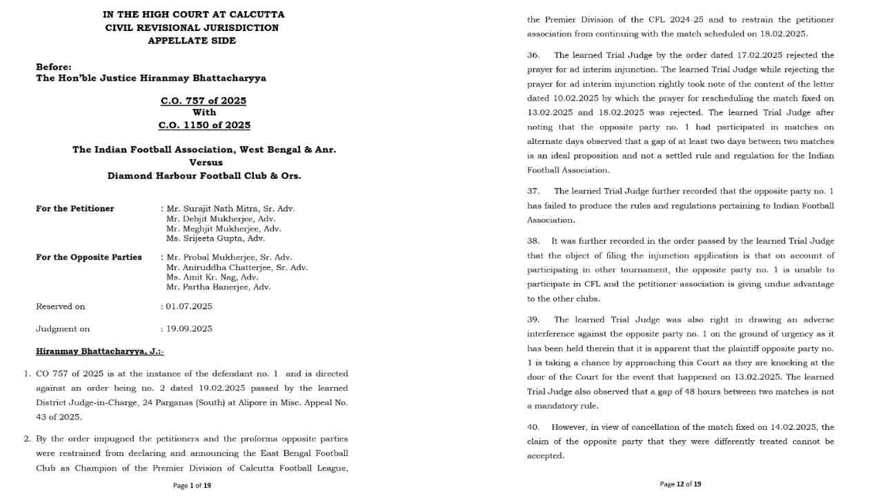 রিপোর্ট অনুযায়ী, অনুরোধে কাজ না হওয়ায় আলিপুর জেলা আদালতের দ্বারস্থ হয় অভিষেকের ক্লাব। আদালতে ডায়মন্ড হারবার জানিয়ে দেয়, ইস্টবেঙ্গলকে চ্যাম্পিয়ন ঘোষণা করা যাবে না। সেই মতোই, আদালতও তৃণমূল সাংসদের ক্লাবটির পক্ষে রায় দেয়। পরবর্তীতে আলিপুর আদালতের ওই সিদ্ধান্তকে কাঠগড়ায় তুলে হাইকোর্টের দ্বারস্থ হয় আইএফএ। এবার তা নিয়েই জেলা আদালতের নির্দেশ উড়িয়ে দিল কলকাতা হাইকোর্ট। উচ্চ আদালতের তরফে স্পষ্ট বলা হয়েছে, জেলা আদালত যথাযথ কারণ ছাড়াই অন্তর্বর্তীকালীন নির্দেশ জারি করে, যা একেবারেই আইনসম্মত নয়।