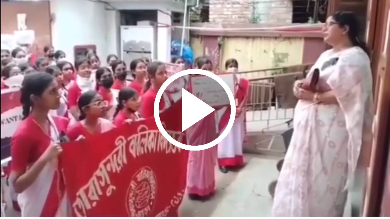 ভাইরাল হওয়া ভিডিওতে শিক্ষিকাকে বলতে শোনা যাচ্ছে, ‘এটা আমার কাছে খুব আনন্দের যে চিঠি লিখে আমাকে জানিয়েছিলে যে তোমরা এই প্রতিবাদে সামিল হতে চাও। আমরা যারা চাকরি করি তাঁদের অনেক সময় অনেক বাধ্য বাধকতা থাকে। এখনও অবধি প্রতিবাদ করার অফিশিয়ালি পারমিশন পাইনি। আর আমরাও ঠিক করেছিলাম। যদি ঢুকতেই হয় জেলে তাহলে আমরা রাস্তায় নেমেই ঢুকবো। ঘরে বসে আমরা থাকব না। একটা কথা মনে রাখবে। অন্যায়ের প্রতিবাদ করার জন্য সবসময় হিল্লি দিল্লি পৌঁছাতে হবে তা নয়। তুমি তোমার বাড়ি থেকেই প্রতিবাদ শুরু করো। মেয়েদের বলা হচ্ছে রাত্তিরের ডিউটি কমিয়ে দেওয়া হবে। আসলে এটা একটা পলিসি, মেয়েদের কাজ থেকে সরিয়ে দাও। নিজেদের অধিকারের জন্য যে কোনও ভিকটিমের পাশে দাঁড়াও। নাহলে তুমি তোমার অধিকার কোনওদিনও খুঁজে পাবে না। সমাজকে বদলাতে হবে।’